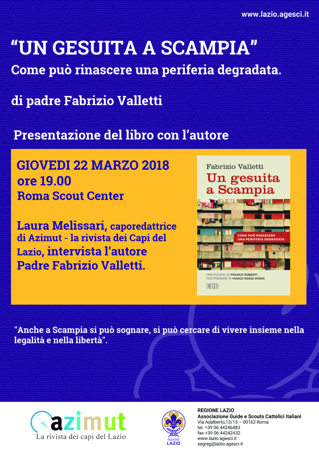 Perché, come sostiene in queste pagine il gesuita Fabrizio Valletti, «anche a Scampia si può sognare, si può cercare di vivere insieme nella legalità e nella libertà». Ed è possibile, soprattutto attraverso la scuola, modificare l’immaginario simbolico dei moltissimi ragazzi del quartiere.