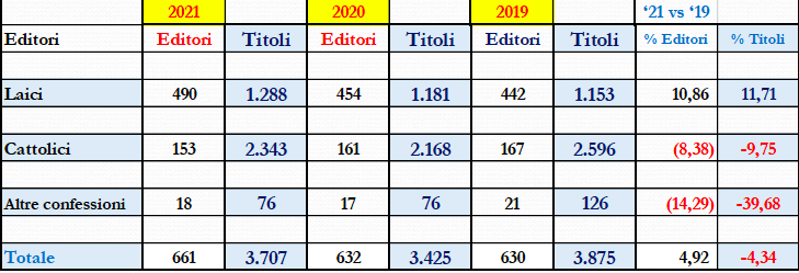 Guardando i numeri del 2021 l’attività produttiva degli editori religiosi evidenzia grandi novità.