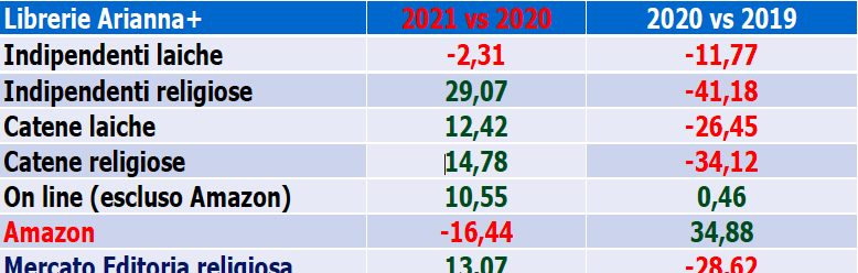 - Nel 2021 recuperano inevitabilmente – ma solo rispetto al 2020 – le librerie indipendenti religiose che avevano patito maggiormente per il lock down.